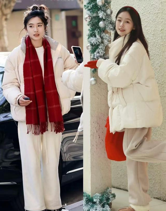 40+:深棕再生羽绒+奶油白羊毛锥形裤,垂坠面料扫过小腿,走路带风自带CEO滤镜。